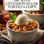 A delicious and cozy Apple Pie Dip paired with crispy Cinnamon Sugar Tortilla Chips, perfect for a sweet snack or dessert. The warm apple mixture is bursting with cinnamon and brown sugar flavors, complemented by crunchy and cinnamon-sugary tortilla chips baked to perfection.