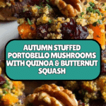 Enjoy the comforting flavors of fall with these Autumn Harvest Stuffed Portobello Mushrooms. Packed with quinoa, butternut squash, cranberries, and walnuts, this dish brings a delightful balance of savory and sweet—perfect as a hearty vegetarian main or side.