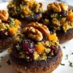 Enjoy the comforting flavors of fall with these Autumn Harvest Stuffed Portobello Mushrooms. Packed with quinoa, butternut squash, cranberries, and walnuts, this dish brings a delightful balance of savory and sweet—perfect as a hearty vegetarian main or side.