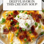 Keywords: baked potato soup, creamy potato soup, comfort food, easy soup recipe, potato soup with cream cheese