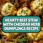 This hearty beef stew with cheddar herb dumplings is a comforting meal perfect for chilly days. Tender chunks of beef simmer with vegetables in a rich broth, topped with fluffy, cheesy dumplings that add a delightful twist. Easy to prepare and full of flavor, it’s sure to become a family favorite.