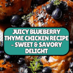 This Best-Ever Blueberry Thyme Chicken is a delicious and elegant dish featuring tender chicken breasts marinated in a flavorful blend of fresh blueberries, thyme, garlic, honey, and balsamic vinegar. The chicken is perfectly seared on the stovetop to lock in juices, then baked to tender perfection with the blueberry marinade, creating a beautiful and tasty sauce. Ideal for a classy weeknight dinner or special occasion, this recipe blends savory and sweet flavors with fresh herbs for an unforgettable meal.