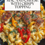 - Step 8: Spoon the toasted breadcrumb topping over the mac and cheese. Garnish with your choice of scallions, onion chives, chili flakes, or crispy fried onions before serving.