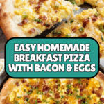 Keywords: breakfast pizza, homemade pizza dough, scrambled eggs, bacon pizza, breakfast recipe, brunch ideas