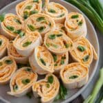 - Serve: Arrange the pinwheels neatly on a serving platter. Optionally, sprinkle with additional chopped green onions or a light drizzle of ranch or buffalo sauce before serving. Enjoy them chilled or at room temperature.