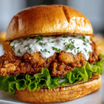 This Cajun Crispy Chicken Sandwich with Garlic Aioli offers an irresistibly juicy and flavorful bite. The chicken breasts are marinated in a buttermilk and Cajun seasoning blend, then dredged in a spiced flour mixture and fried to golden perfection. Paired with a zesty garlic aioli, fresh lettuce, and ripe tomato slices on soft brioche buns, this sandwich is a perfect balance of spicy, creamy, and crispy textures.