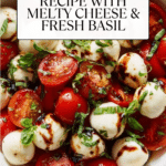 Keywords: Caprese Dip, cheesy dip, roasted tomatoes, appetizer recipe, Italian dip, baked dip, basil pesto dip