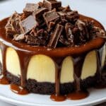Keywords: Caramel Brownie Cheesecake, Chocolate Cheesecake, Caramel Sauce, Brownie Base, Decadent Dessert
