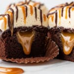 Decadent caramel chocolate cupcakes featuring rich, moist chocolate cake filled with luscious melted caramel and topped with a silky caramel buttercream frosting. Each cupcake is a perfect balance of bittersweet cocoa, creamy caramel, and sweet, fluffy buttercream, finished with a drizzle of caramel and melted chocolate for an irresistible treat.