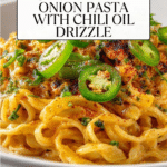 Caramelized Onion Pasta with Chili Oil is a delightful combination of sweet, savory, and spicy flavors. This dish features tender pasta coated in richly caramelized onions and a vibrant homemade chili oil, creating a perfect balance that’s sure to please any palate.