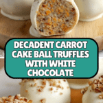 These Carrot Cake Ball Truffles are a delightful twist on classic carrot cake, combining moist, spiced cake crumbs with cream cheese frosting, rolled into bite-sized balls, and dipped in luscious white chocolate. Finished with a pecan topping, they make a perfect sweet treat for parties, holidays, or anytime you crave an indulgent yet elegant dessert.