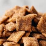 Store the chai snickerdoodle puppy chow in an airtight container in the refrigerator for up to 1 week. When ready to eat, you can enjoy it cold or let it come to room temperature for a softer texture. Avoid storing at room temperature to prevent the coating from becoming sticky.