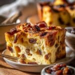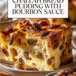 This Challah Bread Pudding with Bourbon Sauce is a comforting and decadent dessert that combines the richness of traditional challah bread soaked in a spiced custard with the warmth of bourbon-soaked raisins. Topped with a luscious homemade bourbon sauce, this baked treat is perfect for holidays or special occasions, offering a perfect balance of sweet, spicy, and boozy flavors.