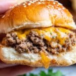 Keywords: Cheeseburger sliders, Hawaiian rolls sliders, easy sliders recipe, party appetizers, baked sliders