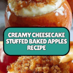 Delight in these Cheesecake Stuffed Apples, a warm and comforting dessert perfect for any occasion. Crisp apples are hollowed out and filled with a creamy cheesecake mixture made from cream cheese, sugars, sour cream, and spices, then baked to tender perfection. Finished with a drizzle of caramel sauce and optional nuts, this dish offers a delicious blend of fruity tartness, creamy sweetness, and delightful textures.