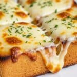 This Cheesy Garlic Bread recipe features fresh French bread topped with a rich garlic butter, Italian seasoning, and generous amounts of Parmesan and mozzarella cheeses. Baked to bubbly perfection and optionally broiled for a golden crust, this irresistible side is perfect for any meal or gathering.