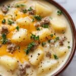 This Cheesy Hamburger Potato Soup is a hearty and comforting meal perfect for chilly days. Packed with tender potatoes, savory ground beef, and melted cheddar, it’s easy to make and deeply satisfying.