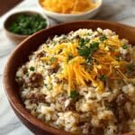 This Cheesy Hamburger Rice Casserole is a comforting one-dish meal perfect for busy weeknights. Combining savory ground beef, tender rice, and gooey cheddar cheese, it’s both hearty and easy to prepare. A simple casserole that the whole family will love!