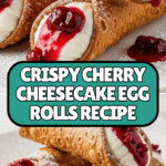 These Cherry Cheesecake Egg Rolls combine creamy cheesecake filling with sweet cherry pie filling wrapped in crispy fried egg roll wrappers. Ready in about 25 minutes, they make a delightful dessert or snack that’s perfect for sharing.