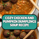This comforting Chicken and Pumpkin Dumplings recipe combines tender shredded chicken, creamy pumpkin, and flavorful autumn spices in a hearty soup. Soft, spiced pumpkin dumplings simmer gently on top, making it perfect for cozy fall or winter meals.