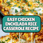 This Chicken Enchilada Rice Casserole is a flavorful, hearty dish combining shredded chicken, rice, black beans, and corn, all layered with zesty enchilada sauce and melted cheese. Perfect for a comforting weeknight dinner, this casserole is easy to prepare and bake, delivering Mexican-inspired flavors in every bite.
