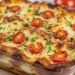 9. Rest and garnish: Remove the casserole from the oven and let it cool for a few minutes before serving. Garnish with fresh basil or parsley if desired for a pop of freshness.