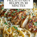 Chicken Piccata Pasta combines tender chicken pieces with a bright, tangy lemon-caper sauce and perfectly cooked pasta. This dish is quick to make, full of flavor, and ideal for a satisfying weeknight dinner.