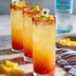 Chile Mango Mexican Candy Shots are vibrant and refreshing mini cocktails that blend the tropical sweetness of mango with the zing of chile-lime seasoning and chamoy. Perfectly rimmed with a spicy Tajín-sugar mix and garnished with dried mango, these shots offer a fun and flavorful taste of Mexico in just a few minutes.
