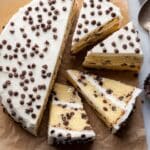 - Frost the Cake: Once the cake layers are fully cooled, spread the chocolate chip buttercream frosting evenly between the layers and over the top and sides of the cake as desired. Decorate with extra mini chocolate chips if preferred.