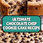 This delicious chocolate chip cookie cake combines the best of both worlds—a soft, chewy cookie texture baked in a large cake pan, perfect for sharing. Made with classic ingredients like all-purpose flour, butter, brown and granulated sugars, and plenty of chocolate chips, this dessert is ideal for celebrations or a special treat.
