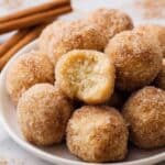 - Use a piping bag with a star tip to shape the dough balls into mini churros instead of rolling into balls for a more classic look.