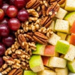 - Prepare Fruit: Wash the apples thoroughly and dice them into bite-sized chunks, keeping the skin on for added nutrition and color. Halve the grapes lengthwise. Place both apples and grapes into a large mixing bowl and toss them with the fresh lemon juice to prevent browning.