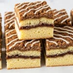 This classic Coffee Cake features a moist, tender crumb layered with a sweet cinnamon streusel and topped with a buttery crumb topping. Finished with a delicate powdered sugar glaze, it’s perfect for breakfast, brunch, or an afternoon treat alongside your favorite cup of coffee.