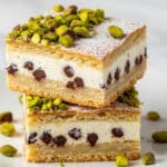 These Classic Cannoli Squares combine creamy ricotta filling with mini chocolate chips sandwiched between flaky pie crusts. Baked to golden perfection and topped with a glossy egg wash, a sprinkle of sugar, chopped pistachios, and maraschino cherries for an irresistible dessert that captures the traditional flavors of cannoli in an easy-to-make square format.
