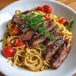 Store any leftovers in an airtight container in the refrigerator for up to 3 days. Reheat gently in a skillet over medium-low heat with a splash of water or broth to keep the pasta moist. Avoid microwaving directly to prevent drying out the steak and pasta.