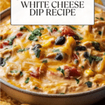 This creamy Mexican white cheese dip is a smooth, flavorful sauce made with melted white American cheese, green chilies, and a blend of aromatic spices. Perfect for dipping chips or enhancing tacos, enchiladas, and grilled meats, it’s easy to prepare on the stovetop and delivers authentic Mexican-inspired taste with a rich, velvety texture.