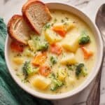 This creamy vegetable soup is a comforting dish perfect for chilly days. Packed with hearty potatoes, carrots, broccoli, and sharp cheddar, it delivers rich flavor and satisfying texture in every spoonful.