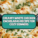 Creamy White Chicken Enchiladas offer a delicious twist on a classic favorite with a rich, velvety sauce and tender shredded chicken. These enchiladas are packed with cheese, a touch of spice from green chiles, and fresh cilantro for brightness. Perfect for a comforting family dinner or casual gathering.
