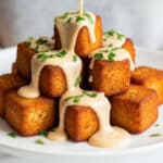 These Crispy Bang Bang Salmon Bites are perfect golden, crunchy salmon cubes tossed in a zesty, creamy bang bang sauce. Coated in a flavorful seasoned panko breadcrumb crust and fried to perfection, they offer a delightful mix of textures and bold flavors. Ideal as a party appetizer or a tasty snack, these bites deliver a satisfying seafood treat with a spicy-sweet kick.