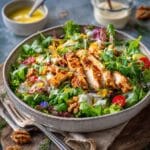 This Crispy Chicken Salad is a delightful mix of fresh vegetables, crunchy chicken tenders, and creamy ranch dressing. It’s a satisfying meal that’s perfect for lunch or a light dinner, combining crisp textures and rich flavors in every bite.