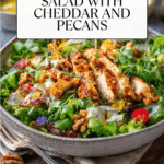 Keep the dressing separate until ready to serve and add crunchy toppings like chicken and pecans just before plating to maintain texture.