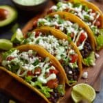 These Crispy Sheet Pan Black Bean Tacos are a delicious and easy vegetarian meal perfect for busy weeknights. Featuring a savory black bean filling seasoned with smoky spices and chipotle, these tacos are topped with melty cheese, baked to crispy perfection on a sheet pan, and served with your favorite fresh toppings like avocado, cilantro, and salsa.