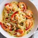 Store any leftover shrimp scampi in an airtight container in the refrigerator for up to 2 days. Reheat gently in a skillet or microwave to avoid toughening the shrimp. It’s best to prepare fresh pasta when serving leftovers for the best texture.