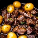 PrintCrockpot Garlic Butter Beef Bites with Potatoes Recipe