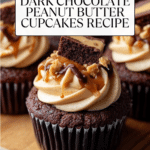 These Dark Chocolate Peanut Butter Cupcakes combine rich chocolate flavor with creamy peanut butter in a tender, fluffy cupcake. Topped with a luscious peanut butter buttercream and a classic peanut butter cup, they’re a perfect treat for any chocolate and peanut butter lover.