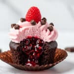 Keywords: Chocolate lava cupcakes, raspberry chocolate cupcakes, molten center cupcakes, raspberry buttercream frosting, chocolate raspberry dessert