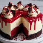 This Decadent Red Velvet Cheesecake Layer Cake is a stunning dessert that combines the rich flavors of red velvet cake with a creamy cheesecake center. Perfect for celebrations or special occasions, it’s sure to impress your family and friends with its beautiful layers and indulgent taste.