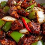 This Easy Black Pepper Chicken Recipe features tender bite-sized chicken pieces sautéed with fresh bell peppers and onions in a savory, spicy black pepper sauce. Quick to prepare and bursting with flavor, this dish is perfect for a satisfying weeknight dinner or a flavorful addition to your Asian-inspired meal rotation.