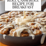 - Cool and Serve: Remove the casserole from the oven and allow it to cool for 10 to 15 minutes. Once slightly cooled, drizzle the reserved cinnamon roll frosting generously over the top. Serve warm for best flavor and texture.