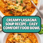 Keywords: lasagna soup, creamy lasagna soup, easy lasagna recipe, one pot soup, Italian soup, comfort food, ground beef soup